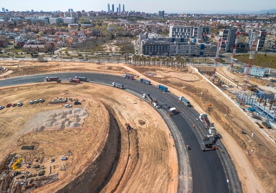 El circuito Madring encara una de sus fases más decisivas con la aparición de su elemento más icónico: la curva 12, conocida como La Monumental, que ya deja ver su imponente trazado tras la aplicación de la primera de sus tres capas de asfalto. Se trata de un avance decisivo de cara al Gran Premio de España de Fórmula 1 , que se celebrará en Madrid el fin de semana del 11 al 13 de septiembre de este 2026.Con 550 metros de longitud y un trazado semicircular, La Monumental está llamada a convertirse en la curva más larga del calendario de la Fórmula 1. Su peralte extremo del 24 por ciento y una altura que alcanza los diez metros configuran un desafío técnico de primer orden, obligando a los pilotos a mantener sus monoplazas inclinados durante aproximadamente seis segundos en plena trazada.La complejidad geométrica y la inclinación de esta curva ha convertido su ejecución en uno de los mayores retos de la obra. El asfaltado de su primera capa base ha requerido una precisión milimétrica, lograda mediante el uso simultáneo de dos máquinas extendedoras de última generación, una técnica poco habitual que ha permitido garantizar la continuidad y homogeneidad del firme.Noticia relacionada No No Madrid acogerá en septiembre de 2026 el Gran Premio de F1 Dounia SbaiEl asfalto empleado es, además, de producción íntegramente madrileña. Elaborado en la planta de Vicálvaro, la mezcla se ha extendido a cerca de 170 grados, una condición crítica que limita su tiempo de aplicación a apenas media hora desde su fabricación. Esta exigencia ha hecho que la proximidad de la planta haya sido clave para optimizar la logística y garantizar la calidad del resultado final. Las dimensiones de la curva han exigido más de 1.800 metros cúbicos de mezcla asfáltica, una cantidad equivalente a cubrir con una capa de 25 centímetros la superficie completa del estadio Santiago Bernabéu. Mientras tanto, el resto del circuito en Valdebebas continúa su desarrollo, con el asfaltado del trazado principal en marcha y la previsión de ejecutar la segunda capa de firme durante el mes de abril. También avanzan a buen ritmo las estructuras del Pit Building y los futuros garajes de los equipos.A falta de 172 días para la celebración del Gran Premio, Madring ya perfila su identidad con La Monumental como «punto icónico del trazado». El nuevo circuito semiurbano, de 5,4 kilómetros y 22 curvas, albergará una carrera de 57 vueltas en la que competirán, además de la Fórmula 1, las categorías de Fórmula 2 y Fórmula 3.El vencedor del Gran Premio levantará el trofeo Monumental, diseñado por la firma italiana Pininfarina e inspirado en la singular geometría de esta curva. El recinto, además, aspira a convertirse en uno de los mejor conectados del calendario, situado a escasos minutos del aeropuerto y con acceso directo mediante metro, tren y múltiples líneas de autobús, lo que permitirá que la mayoría de los asistentes se desplacen en transporte público. Más allá de la competición, Madring quiere proyectarse como un escaparate de la cultura y la gastronomía madrileña, con el tardeo como elemento distintivo en las zonas de aficionados, configurando una experiencia que trasciende lo puramente deportivo. El circuito Madring encara una de sus fases más decisivas con la aparición de su elemento más icónico: la curva 12, conocida como La Monumental, que ya deja ver su imponente trazado tras la aplicación de la primera de sus tres capas de asfalto. Se trata de un avance decisivo de cara al Gran Premio de España de Fórmula 1 , que se celebrará en Madrid el fin de semana del 11 al 13 de septiembre de este 2026.Con 550 metros de longitud y un trazado semicircular, La Monumental está llamada a convertirse en la curva más larga del calendario de la Fórmula 1. Su peralte extremo del 24 por ciento y una altura que alcanza los diez metros configuran un desafío técnico de primer orden, obligando a los pilotos a mantener sus monoplazas inclinados durante aproximadamente seis segundos en plena trazada.La complejidad geométrica y la inclinación de esta curva ha convertido su ejecución en uno de los mayores retos de la obra. El asfaltado de su primera capa base ha requerido una precisión milimétrica, lograda mediante el uso simultáneo de dos máquinas extendedoras de última generación, una técnica poco habitual que ha permitido garantizar la continuidad y homogeneidad del firme.Noticia relacionada No No Madrid acogerá en septiembre de 2026 el Gran Premio de F1 Dounia SbaiEl asfalto empleado es, además, de producción íntegramente madrileña. Elaborado en la planta de Vicálvaro, la mezcla se ha extendido a cerca de 170 grados, una condición crítica que limita su tiempo de aplicación a apenas media hora desde su fabricación. Esta exigencia ha hecho que la proximidad de la planta haya sido clave para optimizar la logística y garantizar la calidad del resultado final. Las dimensiones de la curva han exigido más de 1.800 metros cúbicos de mezcla asfáltica, una cantidad equivalente a cubrir con una capa de 25 centímetros la superficie completa del estadio Santiago Bernabéu. Mientras tanto, el resto del circuito en Valdebebas continúa su desarrollo, con el asfaltado del trazado principal en marcha y la previsión de ejecutar la segunda capa de firme durante el mes de abril. También avanzan a buen ritmo las estructuras del Pit Building y los futuros garajes de los equipos.A falta de 172 días para la celebración del Gran Premio, Madring ya perfila su identidad con La Monumental como «punto icónico del trazado». El nuevo circuito semiurbano, de 5,4 kilómetros y 22 curvas, albergará una carrera de 57 vueltas en la que competirán, además de la Fórmula 1, las categorías de Fórmula 2 y Fórmula 3.El vencedor del Gran Premio levantará el trofeo Monumental, diseñado por la firma italiana Pininfarina e inspirado en la singular geometría de esta curva. El recinto