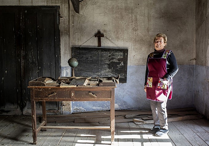 El proyecto mira al pasado e interpela al presente; las antiguas escuelas se vuelven «arcas del tiempo» para una sociedad rural que, con las décadas, se fue desdibujando con los cambios del modelo educativo y la despoblación. Al visitante, cada imagen le plantea preguntas abiertas sobre las decisiones que llevaron al cierre de aquellas aulas, sobre el futuro de los territorios que las albergaron o sobre el esfuerzo de las comunidades de vecinos que sacaban adelante la enseñanza. Porque, para Muñiz, ese es también uno de los objetivos de su trabajo: provocar una reflexión. Por eso el fotógrafo captura instantes que recogen la memoria de las personas y el paso del tiempo, casi «como una manera de pararlo».